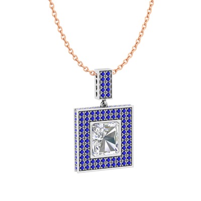 Beyaz zirkon ve lab safir 18 ayar beyaz altın kolye (40 cm gümüş rolo zincir)