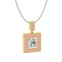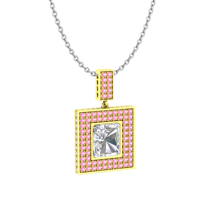 Beyaz zirkon ve pembe kuvars 14 ayar altın kolye (40 cm beyaz altın rolo zincir)