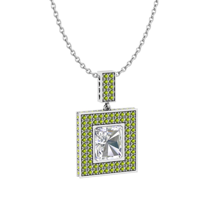 Beyaz zirkon ve peridot 14 ayar beyaz altın kolye (40 cm gümüş rolo zincir)