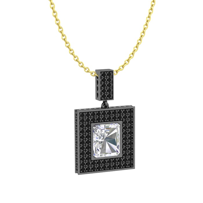 Beyaz zirkon ve siyah zirkon 925 ayar siyah rodyum kaplama gümüş kolye (40 cm altın rolo zincir)