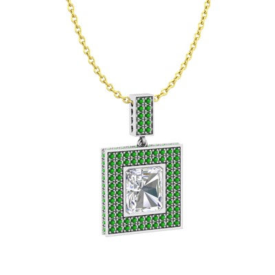 Beyaz zirkon ve yeşil kuvars 8 ayar beyaz altın kolye (40 cm altın rolo zincir)