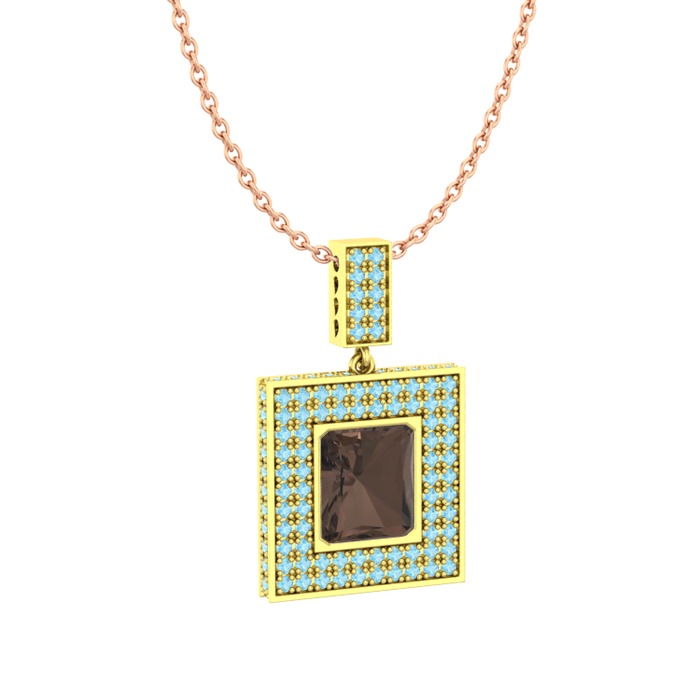Dumanlı kuvars ve akuamarin 14 ayar altın kolye (40 cm rose altın rolo zincir)