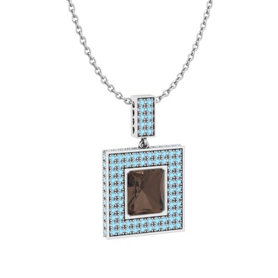 Dumanlı kuvars ve akuamarin 14 ayar beyaz altın kolye (40 cm beyaz altın rolo zincir)