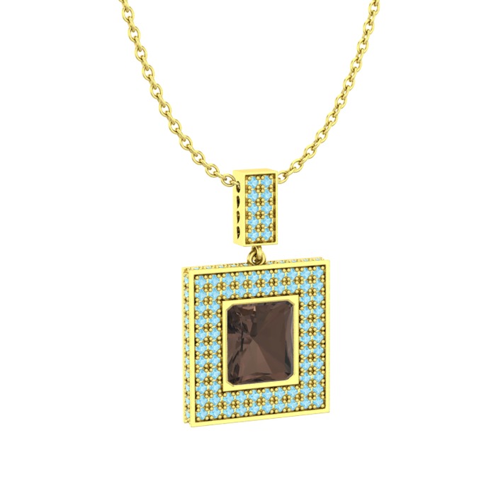 Dumanlı kuvars ve akuamarin 18 ayar altın kolye (40 cm altın rolo zincir)