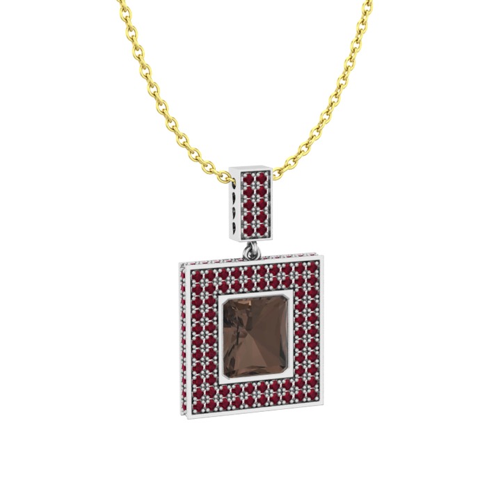 Dumanlı kuvars ve kök yakut 18 ayar beyaz altın kolye (40 cm altın rolo zincir)