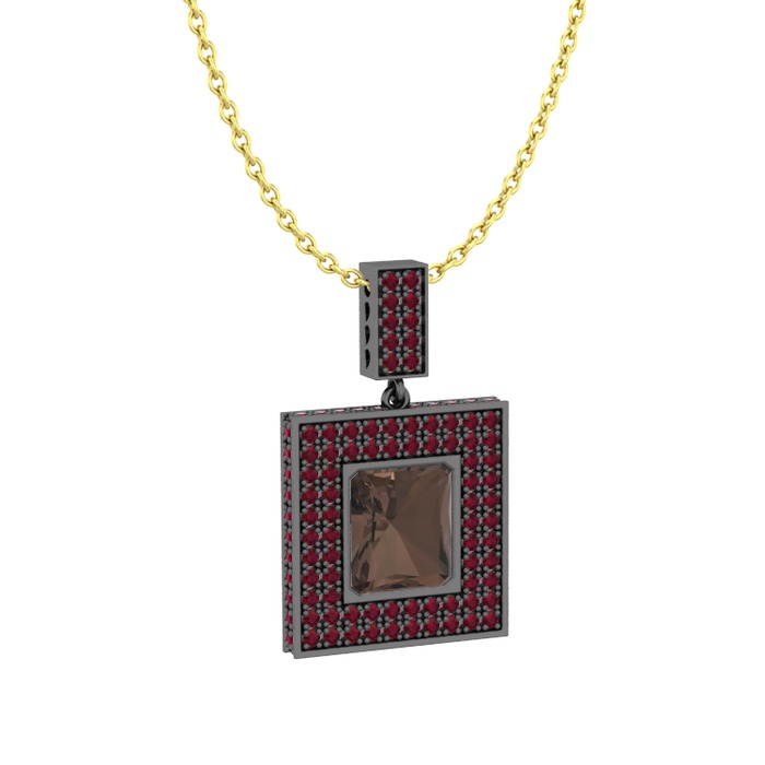 Dumanlı kuvars ve kök yakut 925 ayar siyah rodyum kaplama gümüş kolye (40 cm altın rolo zincir)