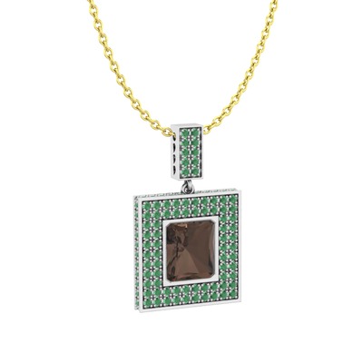 Dumanlı kuvars ve kök zümrüt 18 ayar beyaz altın kolye (40 cm altın rolo zincir)