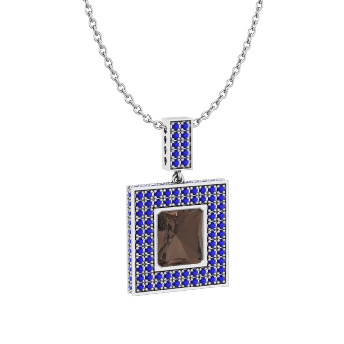 Dumanlı kuvars ve lab safir 925 ayar gümüş kolye (40 cm beyaz altın rolo zincir)