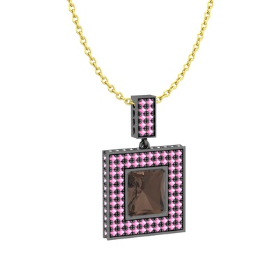 Dumanlı kuvars ve pembe kuvars 925 ayar siyah rodyum kaplama gümüş kolye (40 cm altın rolo zincir)