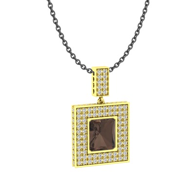 Dumanlı kuvars ve pırlanta 8 ayar altın kolye (2.808 karat, 40 cm gümüş rolo zincir)