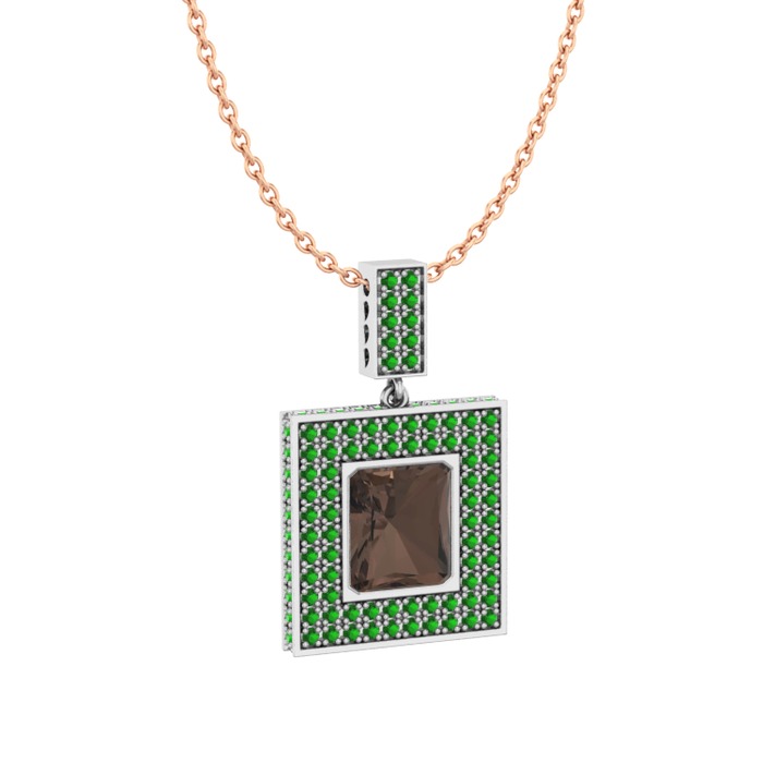 Dumanlı kuvars ve yeşil kuvars 8 ayar beyaz altın kolye (40 cm gümüş rolo zincir)