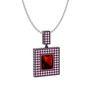 Garnet ve pembe kuvars 925 ayar siyah rodyum kaplama gümüş kolye (40 cm beyaz altın rolo zincir)