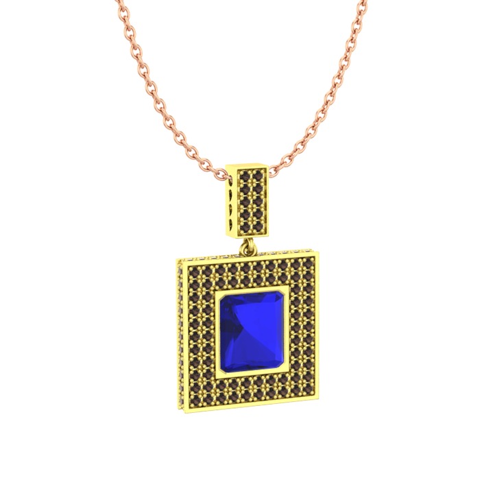 Lab safir ve dumanlı kuvars 14 ayar altın kolye (40 cm rose altın rolo zincir)