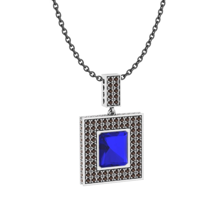 Lab safir ve dumanlı kuvars 14 ayar beyaz altın kolye (40 cm gümüş rolo zincir)