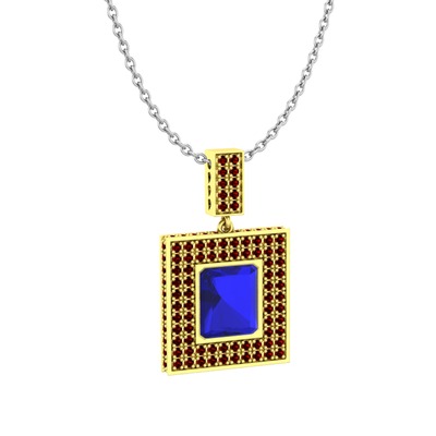 Lab safir ve garnet 8 ayar altın kolye (40 cm beyaz altın rolo zincir)