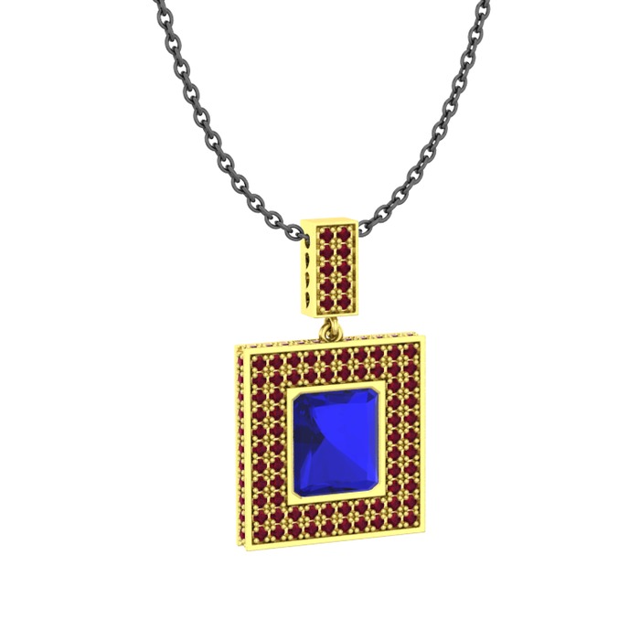 Lab safir ve kök yakut 18 ayar altın kolye (40 cm gümüş rolo zincir)