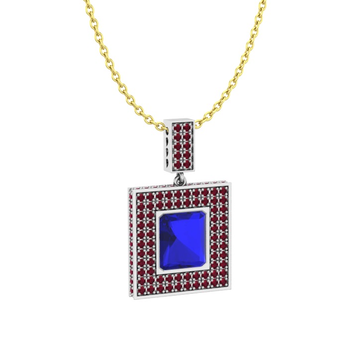 Lab safir ve kök yakut 18 ayar beyaz altın kolye (40 cm altın rolo zincir)