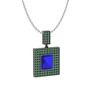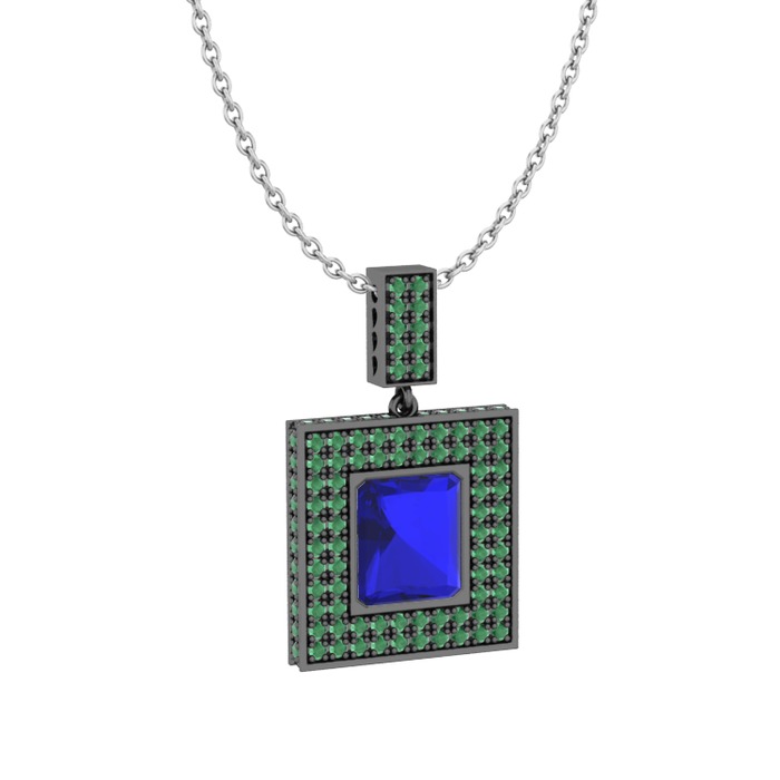 Lab safir ve kök zümrüt 925 ayar siyah rodyum kaplama gümüş kolye (40 cm gümüş rolo zincir)