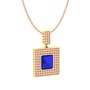Lab safir ve pembe kuvars 18 ayar altın kolye (40 cm rose altın rolo zincir)