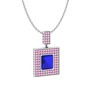 Lab safir ve pembe kuvars 18 ayar beyaz altın kolye (40 cm gümüş rolo zincir)