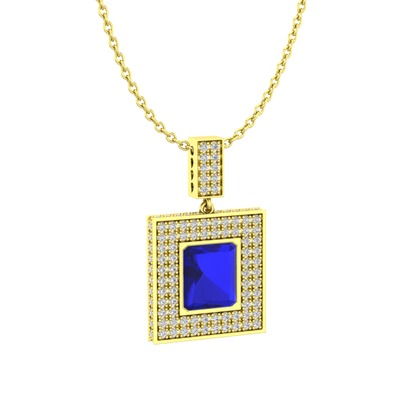 Lab safir ve pırlanta 18 ayar altın kolye (2.808 karat, 40 cm gümüş rolo zincir)