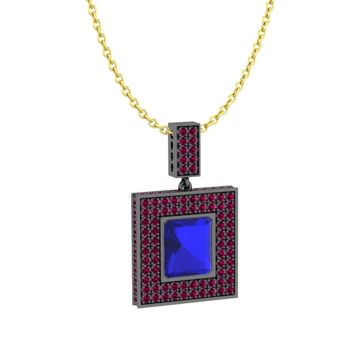 Lab safir ve rodolit garnet 925 ayar siyah rodyum kaplama gümüş kolye (40 cm gümüş rolo zincir)
