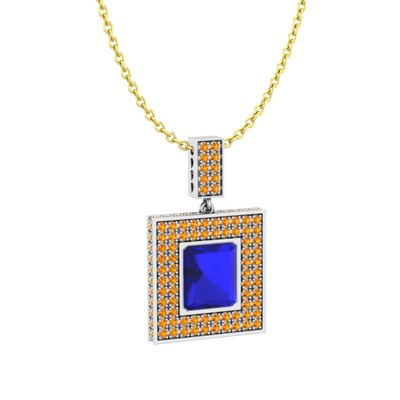 Lab safir ve sitrin 925 ayar gümüş kolye (40 cm altın rolo zincir)