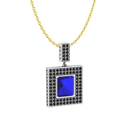 Lab safir ve siyah zirkon 8 ayar beyaz altın kolye (40 cm altın rolo zincir)