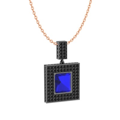 Lab safir ve siyah zirkon 925 ayar siyah rodyum kaplama gümüş kolye (40 cm rose altın rolo zincir)