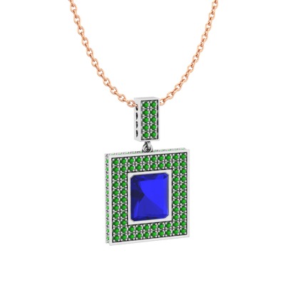 Lab safir ve yeşil kuvars 8 ayar beyaz altın kolye (40 cm gümüş rolo zincir)