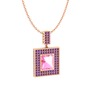 Pembe kuvars ve ametist 8 ayar rose altın kolye (40 cm rose altın rolo zincir)