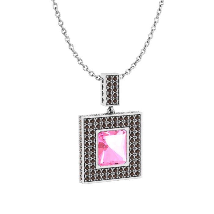 Pembe kuvars ve dumanlı kuvars 925 ayar gümüş kolye (40 cm beyaz altın rolo zincir)