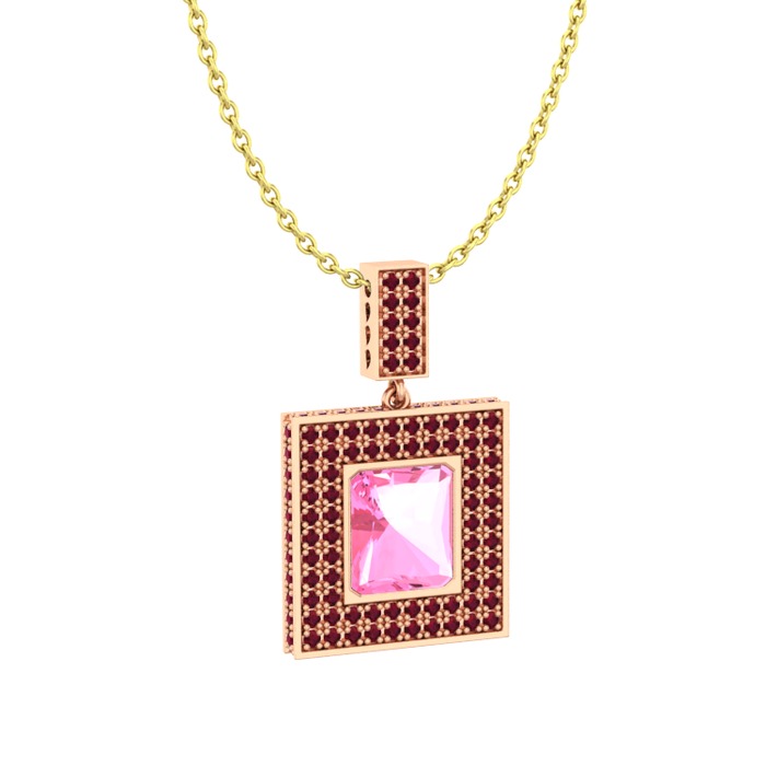 Pembe kuvars ve kök yakut 925 ayar rose altın kaplama gümüş kolye (40 cm altın rolo zincir)