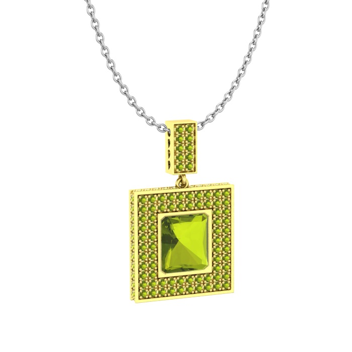 Peridot 18 ayar altın kolye (40 cm beyaz altın rolo zincir)