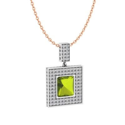 Peridot ve beyaz zirkon 14 ayar beyaz altın kolye (40 cm gümüş rolo zincir)
