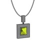 Peridot ve beyaz zirkon 925 ayar siyah rodyum kaplama gümüş kolye (40 cm gümüş rolo zincir)