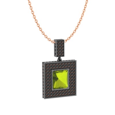Peridot ve dumanlı kuvars 925 ayar siyah rodyum kaplama gümüş kolye (40 cm rose altın rolo zincir)