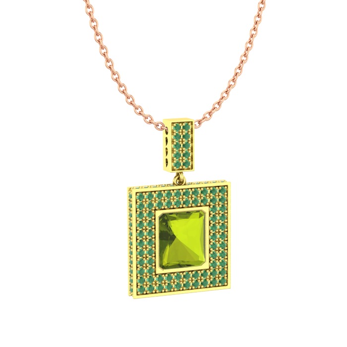 Peridot ve kök zümrüt 925 ayar altın kaplama gümüş kolye (40 cm gümüş rolo zincir)