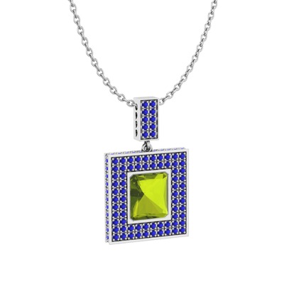 Peridot ve lab safir 18 ayar beyaz altın kolye (40 cm beyaz altın rolo zincir)