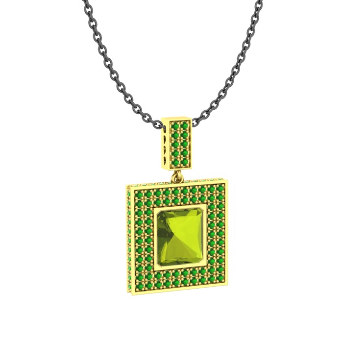Peridot ve yeşil kuvars 8 ayar altın kolye (40 cm gümüş rolo zincir)