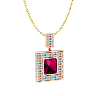 Rodolit garnet ve akuamarin 8 ayar rose altın kolye (40 cm altın rolo zincir)