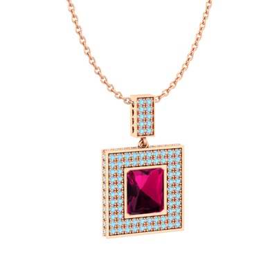 Rodolit garnet ve akuamarin 8 ayar rose altın kolye (40 cm gümüş rolo zincir)