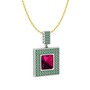 Rodolit garnet ve kök zümrüt 14 ayar beyaz altın kolye (40 cm altın rolo zincir)
