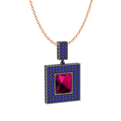 Rodolit garnet ve lab safir 925 ayar siyah rodyum kaplama gümüş kolye (40 cm gümüş rolo zincir)