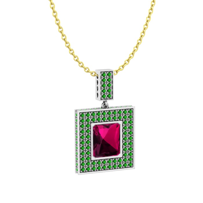 Rodolit garnet ve yeşil kuvars 8 ayar beyaz altın kolye (40 cm altın rolo zincir)