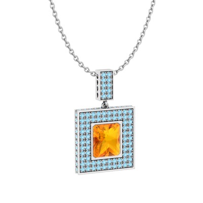 Sitrin ve akuamarin 925 ayar gümüş kolye (40 cm gümüş rolo zincir)