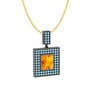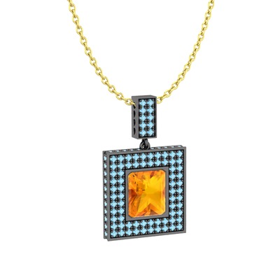 Sitrin ve akuamarin 925 ayar siyah rodyum kaplama gümüş kolye (40 cm altın rolo zincir)