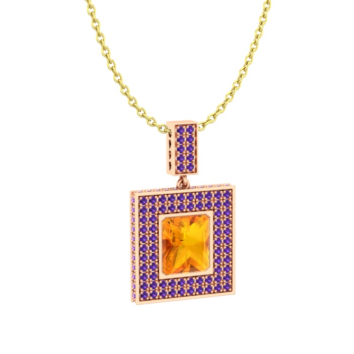 Sitrin ve ametist 18 ayar rose altın kolye (40 cm altın rolo zincir)