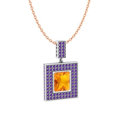 Sitrin ve ametist 8 ayar beyaz altın kolye (40 cm rose altın rolo zincir)