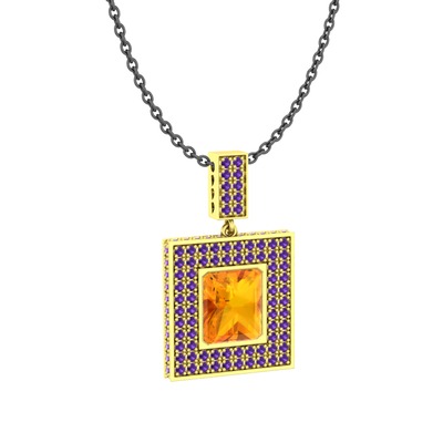 Sitrin ve ametist 925 ayar altın kaplama gümüş kolye (40 cm gümüş rolo zincir)
